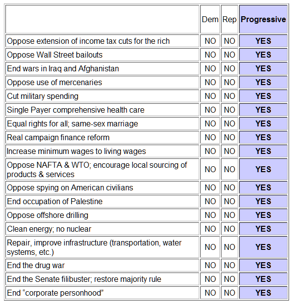 - Progressive Party Positions Table